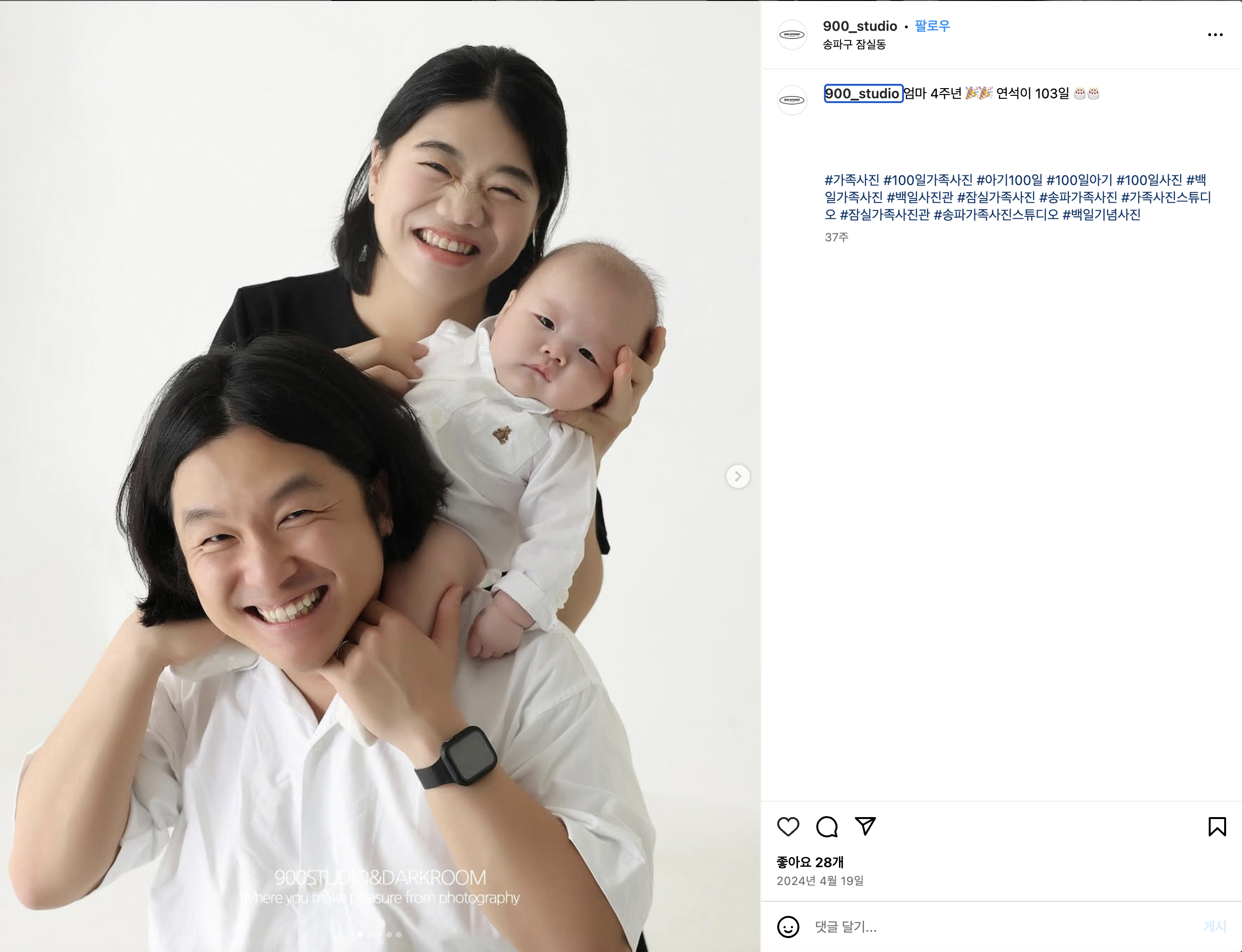 2. 구백 스튜디오 인스타그램에 100일사진 레퍼런스가 있었는데, 아주 예뻣다. (너무 예쁜가족..❣️)
