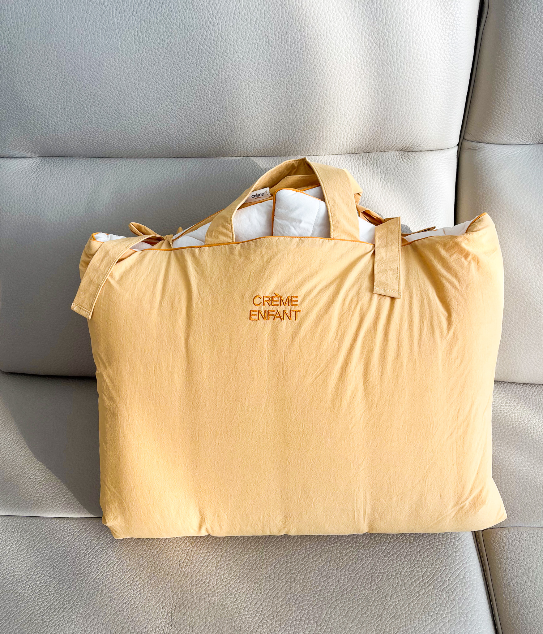 접었을때, 너무 크지않고 적당해서 좋다. 어린이집 유인물을 보니 너무 커다란 낮잠이불은 지양해달라고 써있어서 아떼아떼 낮잠이불 안사길 잘했다는 생각을 했다.